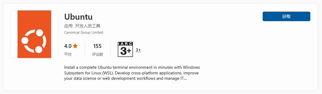 (2).打开windows应用商店,搜索"Windows Subsystem for Linux"和"ubuntu"(或其他喜欢的Linux系统) 并安装。