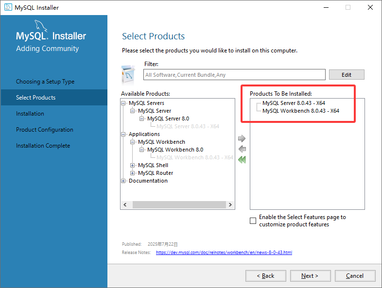 MySQL Installer for Windows - 运行安装程序,选择“Custom”安装模式