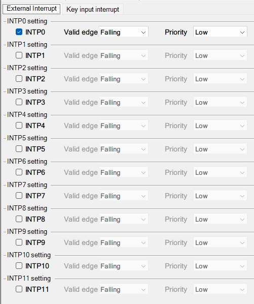 | Priority | 设定该中断源的优先级(Low / High)。同一优先级下还有自然顺序。 |