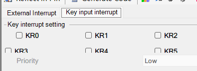 | KR0~KR5 复选框 | 打勾 = 使能该引脚的中断功能;不勾 = 普通 GPIO。 |