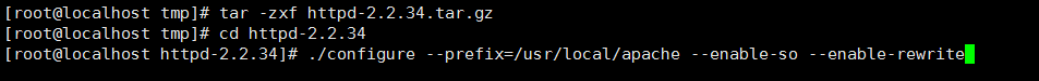 ./configure --prefix=/usr/local/apache --enable-so --enable-rewrite