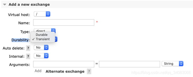 - 再创建一个exchangeB,binding queueB,配置routing keyB,queue添加参数设置:x-message-ttl配置超时时间,毫秒;x-dead-letter-exchange配置死信交换机。即x-dead-letter-exchange=exchangeA;x-dead-letter-routing-key配置当消息死信时传入DLX时用的routing key,即x-dead-letter-routing-key=routing keyA,如不配置,则使用queueB的routing key,即routing keyB。还要保证queueB没有消费者监听。