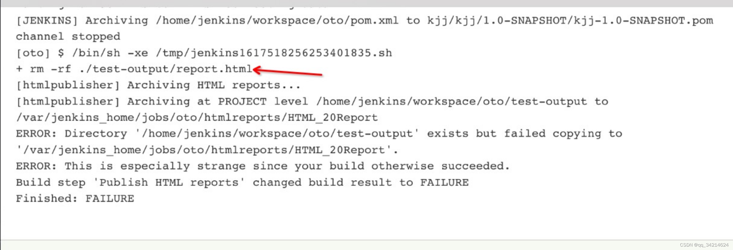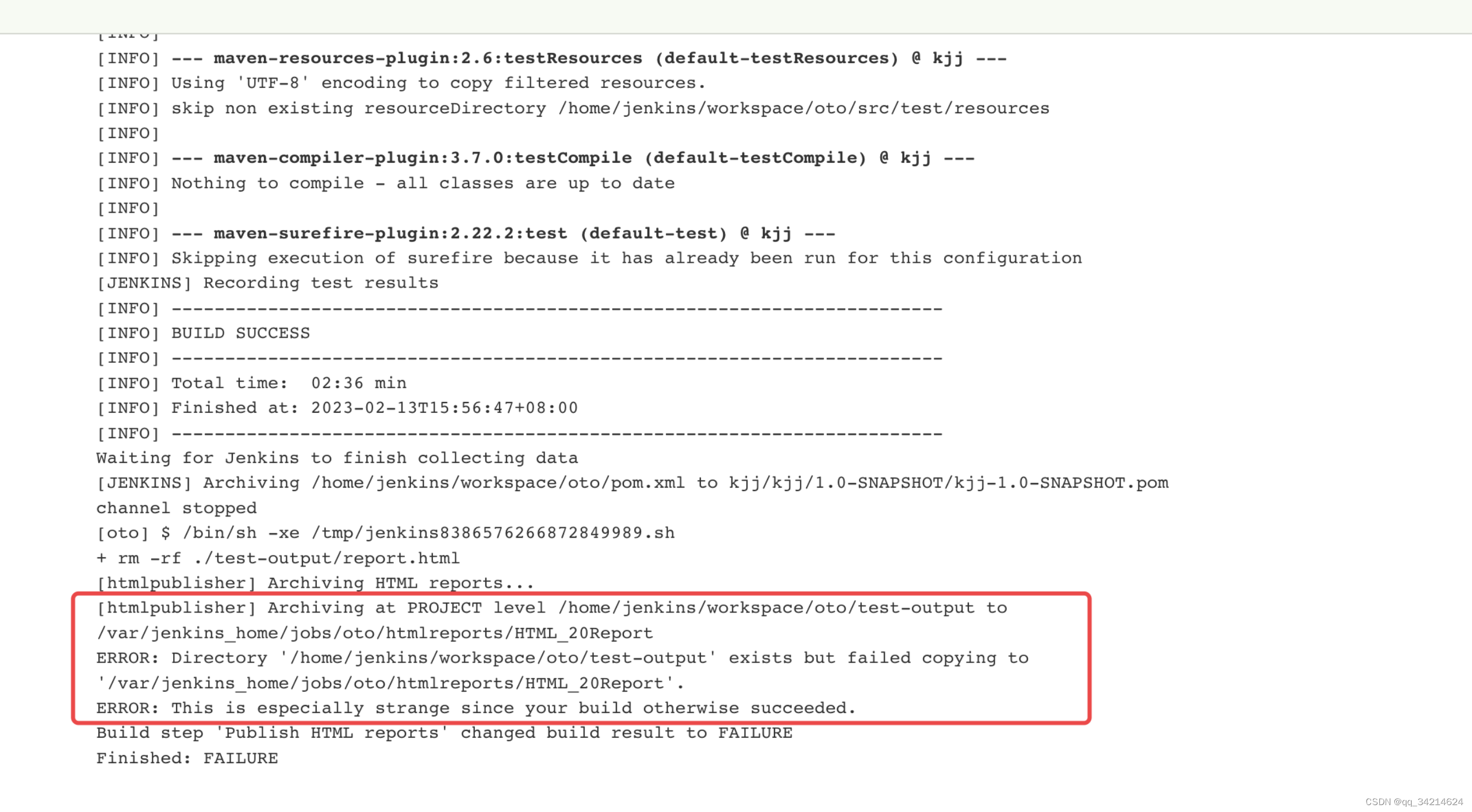 - 定时构建失败,控制台日志提示输出测试报告文件存在但拷贝失败而报错。
