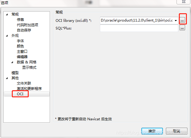 2 在Navicat配置oci.dll文件: