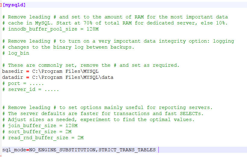 配置完环境变量之后先别忙着启动mysql,还需要修改一下配置文件