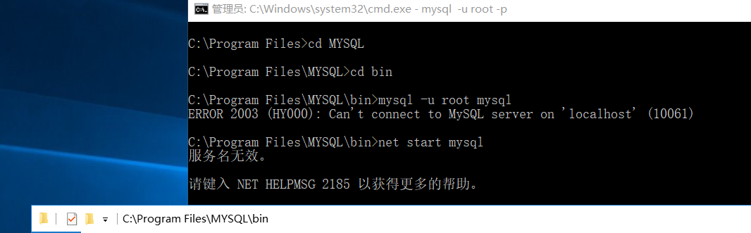 (不管有没有配置过环境变量,也要进入bin文件夹,否则之后启动服务仍然会报错误2)
