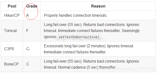 另外,关于可靠性方面,也是有实验和数据支持的。对于数据库连接中断的情况,通过测试getConnection(),各种CP的不相同处理方法如下: