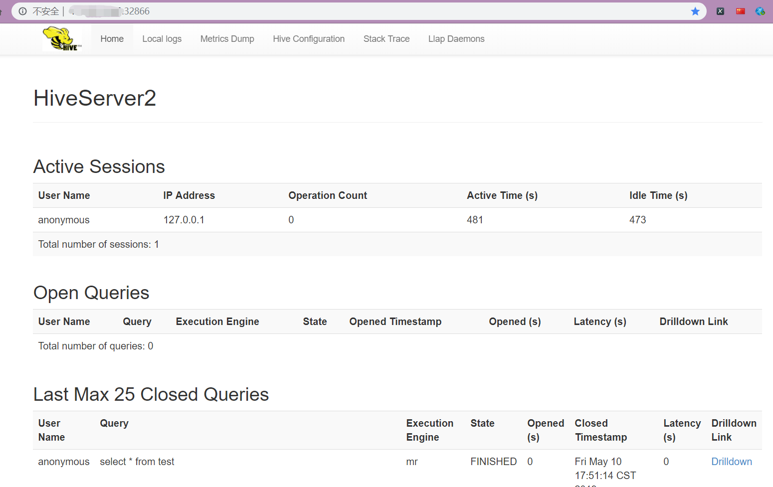 - HiveServer2 信息 默认端口为 10002