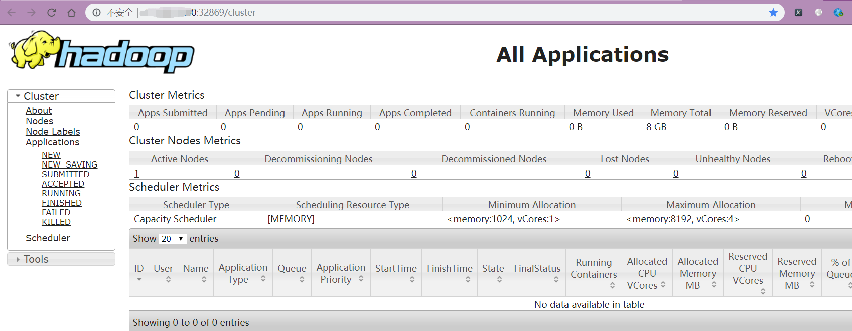 - Hadoop All Applications 默认端口为 8088