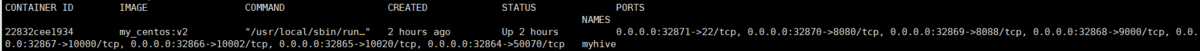 docker run -d -P --name myhive my_centos:v2 /usr/local/sbin/run.sh