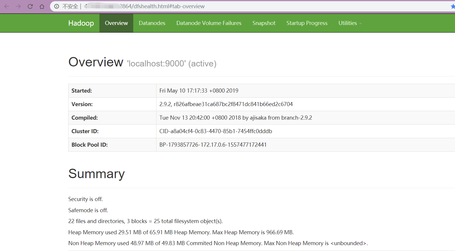 - Hadoop 配置信息 默认端口为 50070