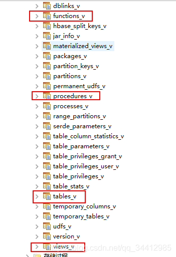 字典表在system库的视图中 columns_v,functions_v,procedures_v,tables_v,views_v