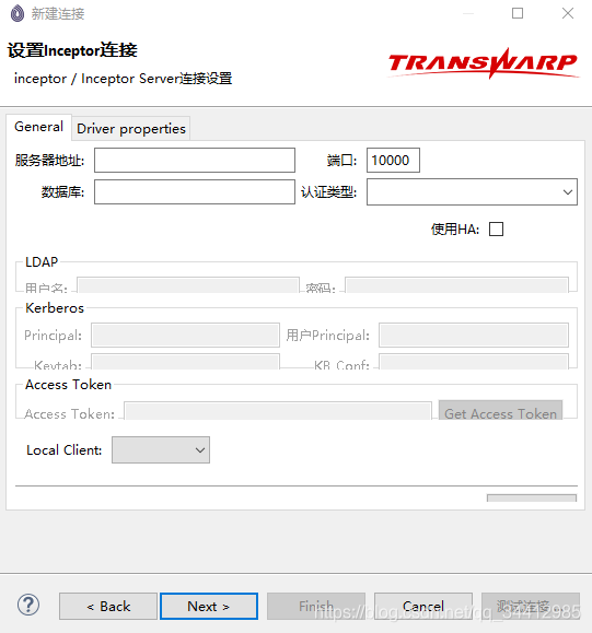 waterdrop连接Inceptor server的地址就是tdh的ip地址 10.113.11.33 使用ldap认证方式,即tdh登录时用户名admin密码admin