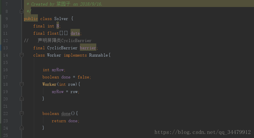 CyclicBarrier类实现了同步屏障,可以通过使用构造器CyclicBarrier(int parties)来创建其对象,其中的parties代表拥有共同执行目标的线程数量,也可以通过构造器CyclicBarrier(int parties,Runnable barrierAction)来创建指定任务的同步屏障,其特点是最后一条线程到达屏障点之后会执行barrierAction任务,然后其他线程继续执行。构造器参数的parties如果小于1,构造器会抛出异常,如果把barrierAction设置为null,那么当最后一条线程跨越屏障时不会执行任务。