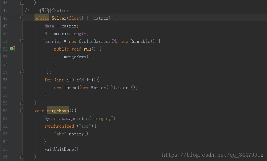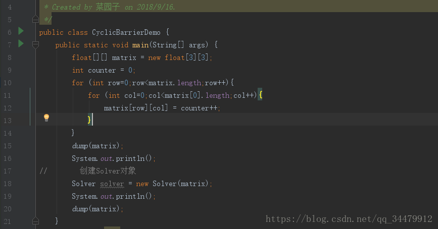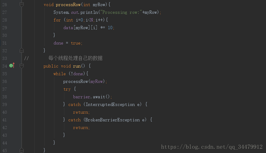 这个例子是Javadoc文档中给出的示例代码,演示了如何使用3个线程完成一个二维数组的处理过程,当处理结束后把结果打印出来。