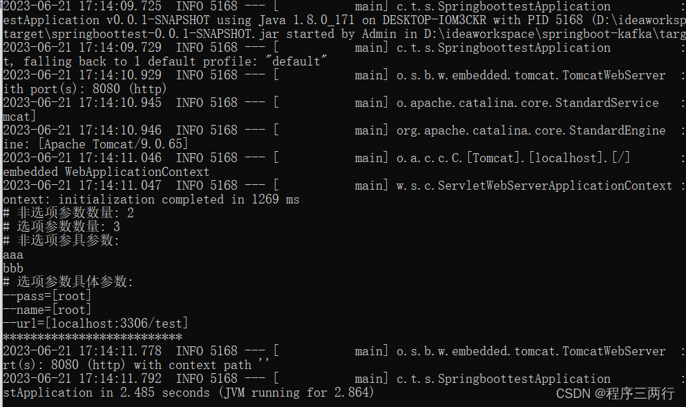 java -jar springboottest-0.0.1-SNAPSHOT.jar --url=localhost:3306/test --name=root --pass=root aaa bbb
