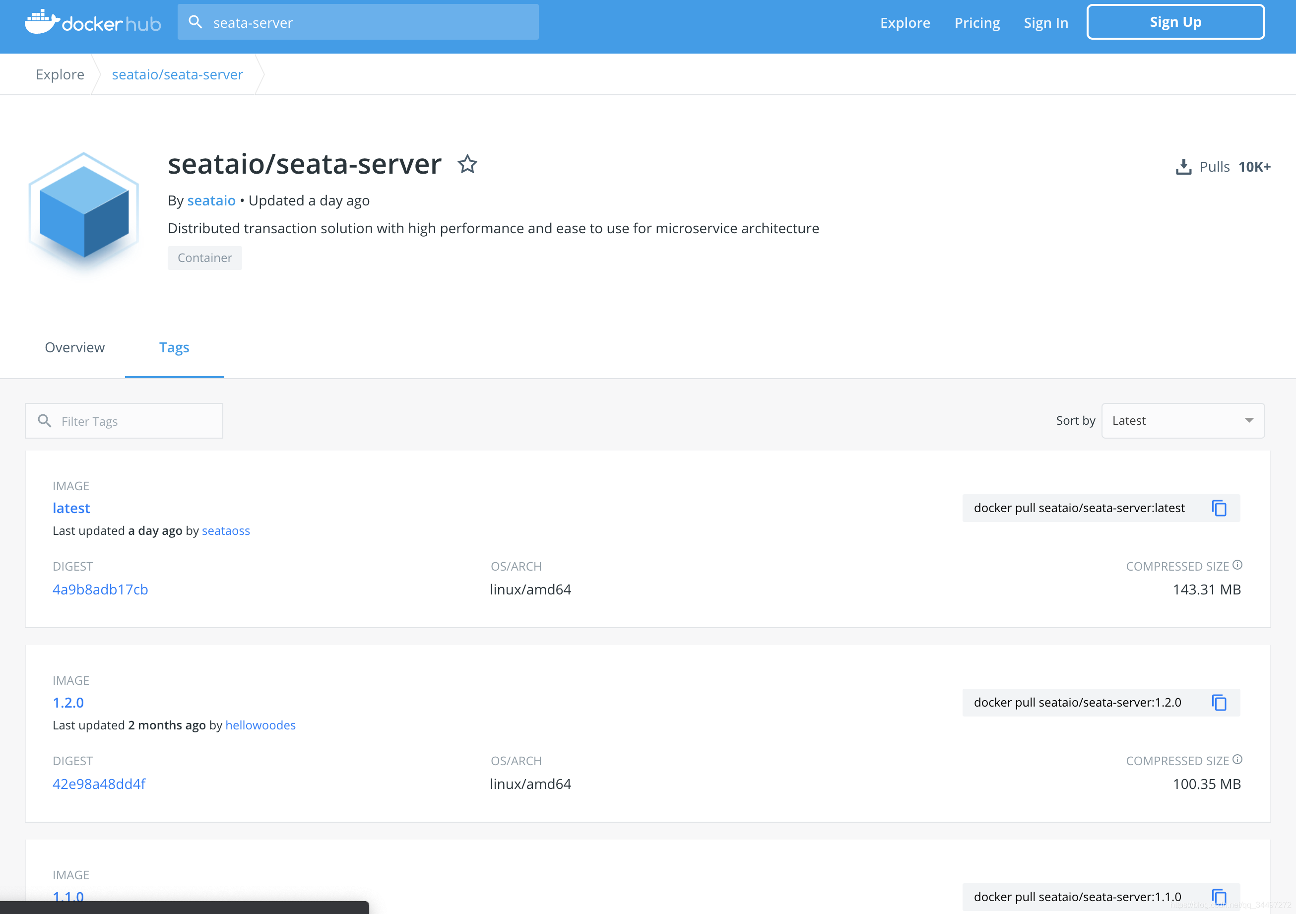 镜像地址:https://hub.docker.com/r/seataio/seata-server/tags