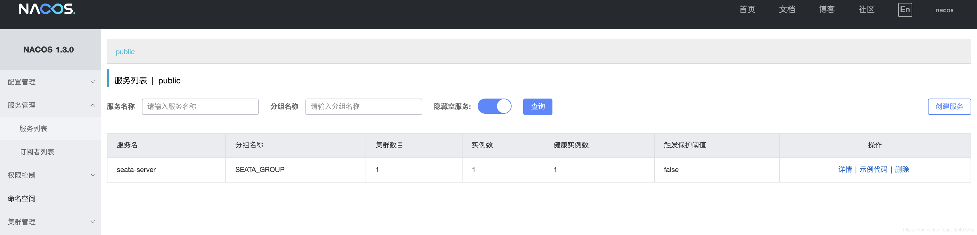 环境描述:安装seata前,先保证有可正常运行的nacos。数据库使用的安装nacos时已经安装好的nacos-mysql 5.7。