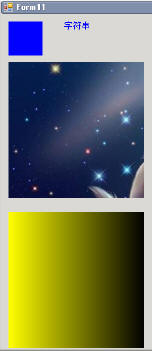 g.DrawString("字符串", new Font("宋体", 10), b1, new PointF(90, 10));