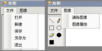 为了让代码藕合度小点,稍许用了些设计模式,因为不是很会,所以代码还是有点乱乱的,嘿嘿!关于绘图工具的这些功能块全部写在了DrawTools这个类里.那么在主窗体中,只需要调用这个类来完成绘制就行了,而不需要过多的涉及到具体的绘图代码。绘图工具这个类提供的主要工具就是:铅笔、橡皮、直线、矩形、圆形、实心矩形、实心圆形。关于这些功能块的代码,并不难,只要大家对认真看过前几篇内容,那应该都看得懂。