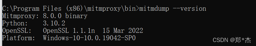 C:\Program Files (x86)\mitmproxy\bin下cmd执行:mitmdump --version,有下图证明完成安装