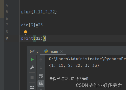 dic.[3]=33 #将键为3值为33的直接写进dic字典内