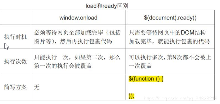 2. jQuery 入口函数与 JavaScript 入口函数的区别: