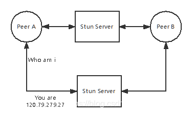 在上述过程中,采用了ICE,这个框架在STUN和TURN服务器的基础上完成网络穿透。如图5所示,A、B两终端通过STUN服务器得知对方公网IP和端口,并得知NAT类型。