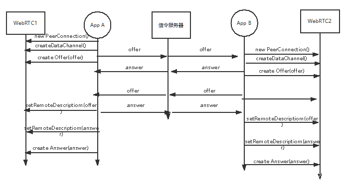 - 请求方生成SDP(offer),通过setlocalDescription()方法设置为localDescription,并通过信令服务器将offer发送给应答方。