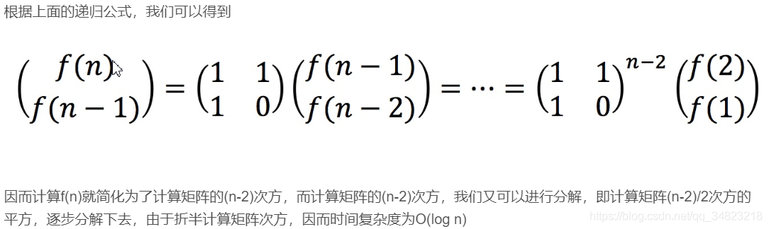 本文总结了斐波那契数列的三种实现方式:递归、循环和矩阵快速幂。递归实现虽然简单但效率低,易导致栈溢出;循环实现时间复杂度为O(N),空间复杂度为O(1);矩阵快速幂算法则提供了更低的时间复杂度解决方案。