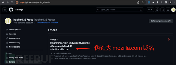 在作者给出的案例中,通过这样的方式可以在github上面认证任意后缀的邮箱地址,如下图所示。
