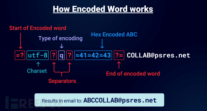 其中=?代表编码开始的位置,utf-8代表后续的字符集类型(其它支持的类型包括utf-8、iso-8859-1等),q代表编码方式的简称(其中q代表Q-Encoding,是一种hex编码方式;b代表Base64-Encoding,是base64编码),?=代表编码结束的位置。