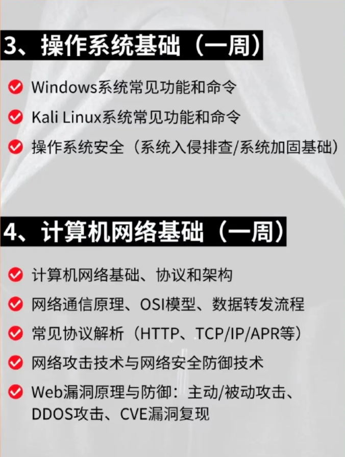 系统+网络(各1周):掌握Windows/Linux操作,弄清网络协议与攻防