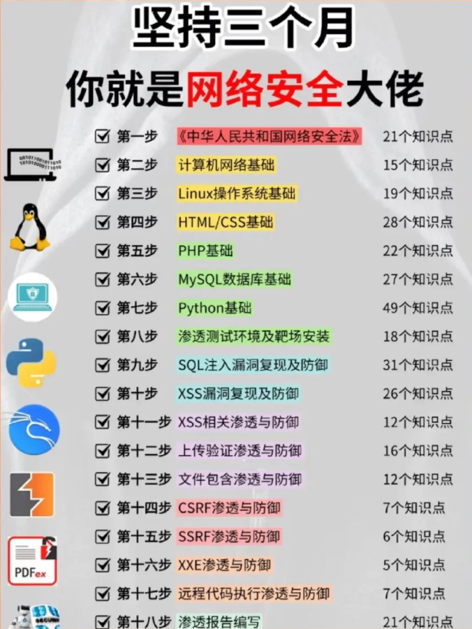 网络安全真不是“玄学”,没有那么多门槛!跟着这份指南,每天花1-2小时,3个月绝对能从小白变成能上手的“网安达人”~ 觉得有用的宝子点个关注,后续拆解每个知识点的实操技巧,陪你一起通关!