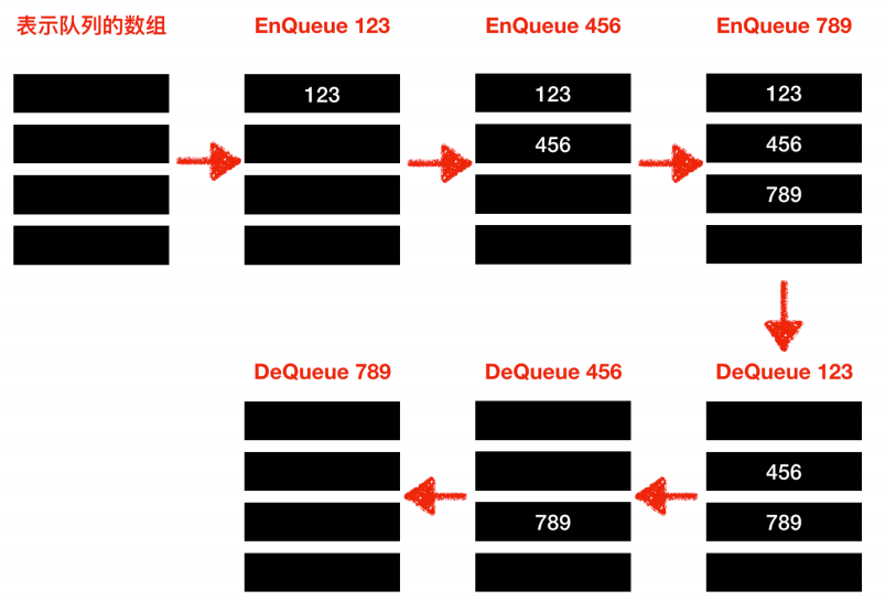 向队列中写入数据称为 EnQueue()入列,从队列中读出数据称为 DeQueue()。