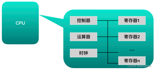 - 时钟:负责发出 CPU开始计时的时钟信号;