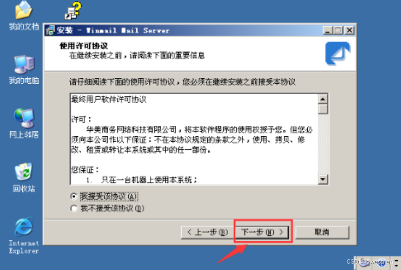 选择“我接受”单选框,点击下一步即可: