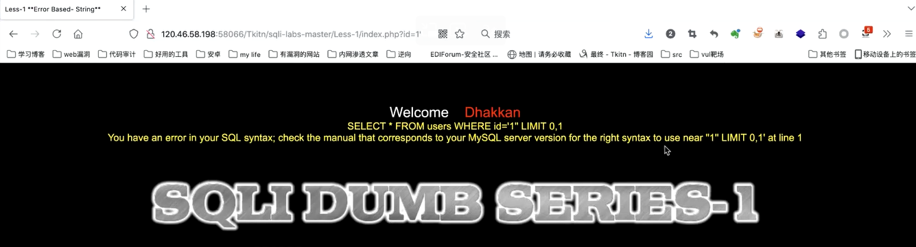 以查找书籍页面为例,post一个name=1给后端,拼接到sql语句select * from books where bookid='$id' limit 0,1;