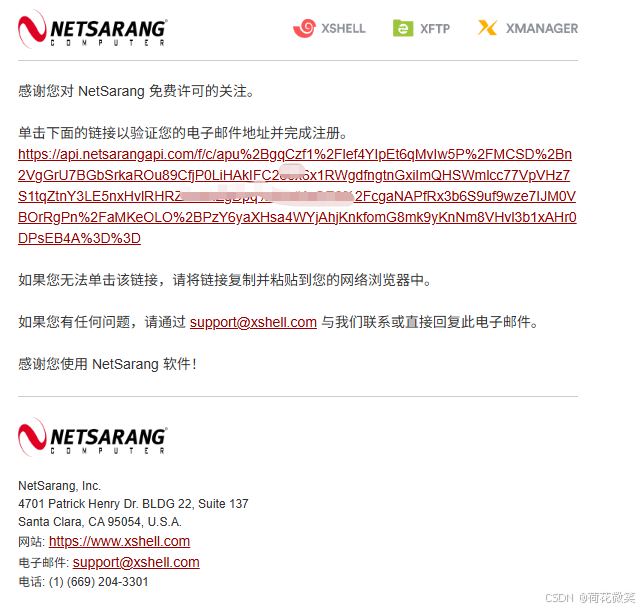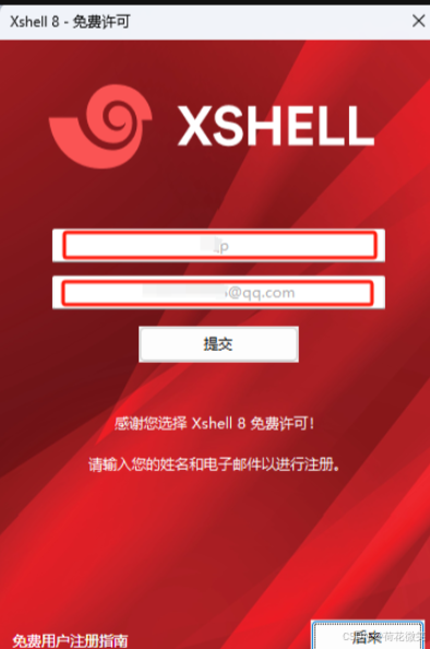 xshell和xftp 第一次运行软件的时候,填写用户名和邮箱,邮箱收到一封邮件,根据邮箱说明,点击链接完成注册即可