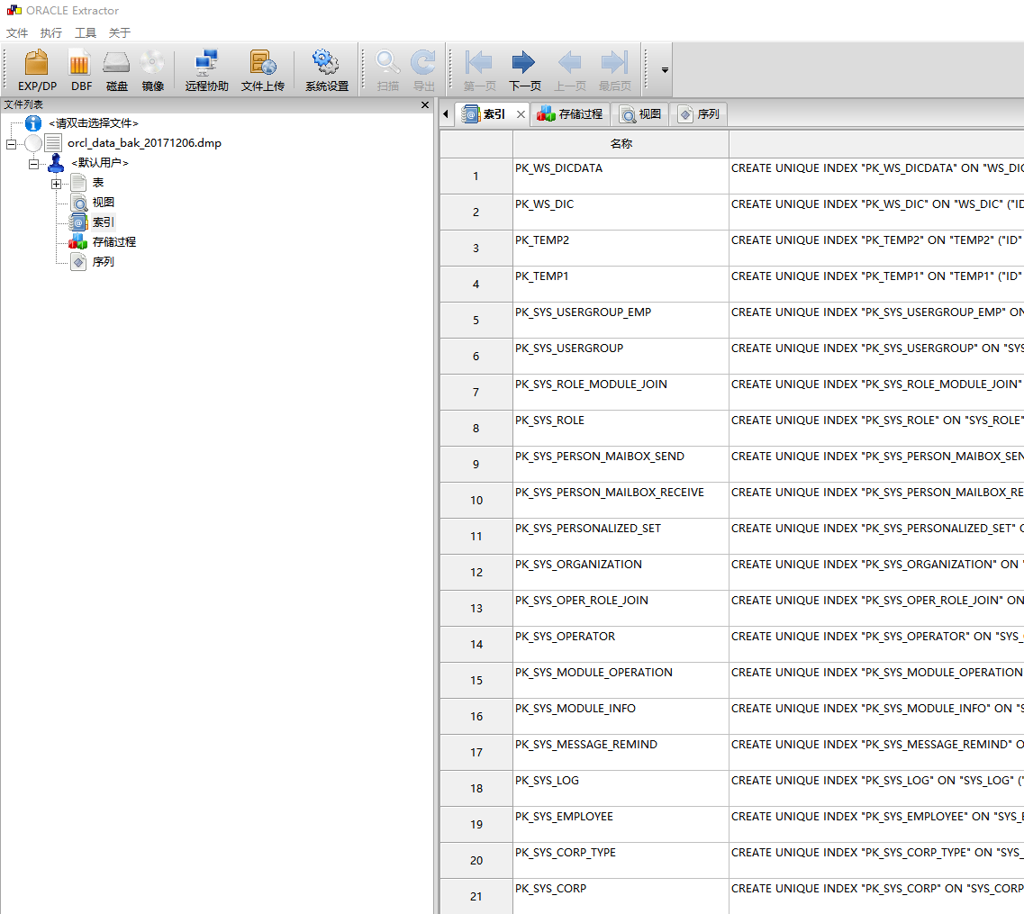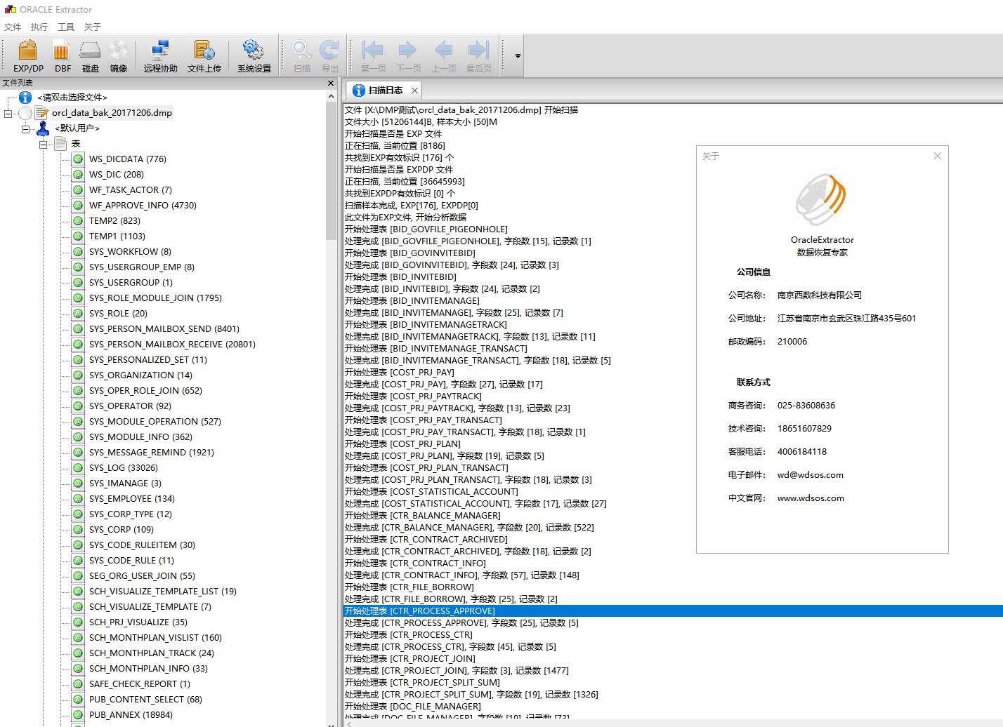 西数DES数据库取证分析大师系统 软件界面 功能介绍: 支持勒索病毒加密的oracle数据库 可从数据文件 DBF,dmp文件恢复表数据,存储过程,触发器等所有数据.。 (1)系统崩溃只剩下数据文件的情况下的恢复,无system01.dbf 也可以提取其他表空间数据 支持从磁盘恢复丢失的归档日志 . (2) undo system 表空间损坏数据恢复 .各种ORA错误 如ORA600等顽固性错误。无法open 无法mount等 无法EXP等情况。 (3) 非归档或者归档模式下误 d