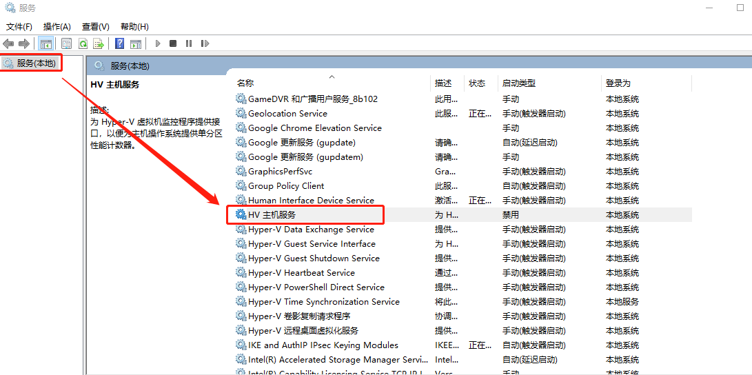 “win+ R“打开运行,输入services.msc,确定打开本地服务 > 找到HV主机服务 > 启动类型设置为“禁用”