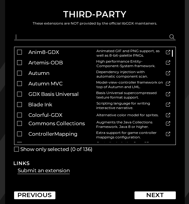 LibGDX 框架的第三方扩展(THIRD - PARTY)选择界面。我一个初学者就不选了。