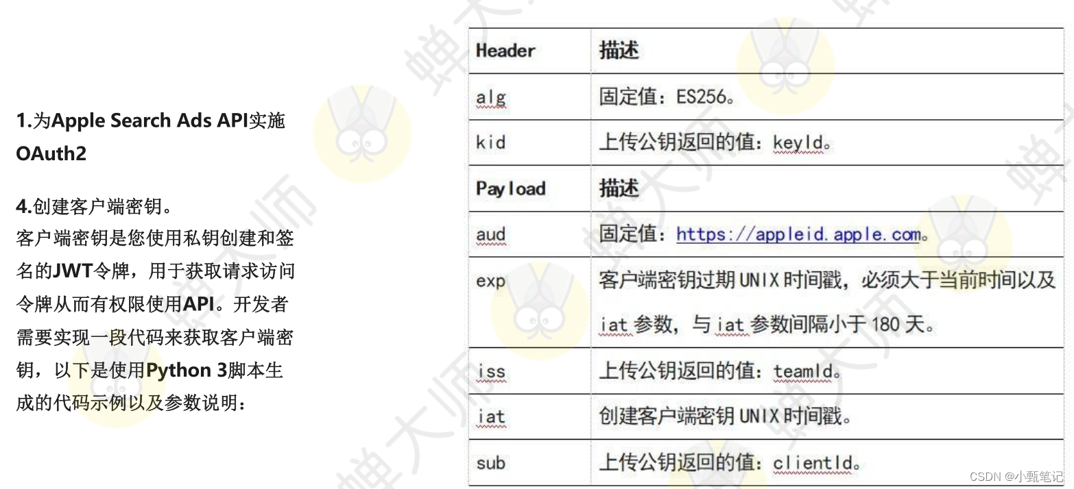 本文介绍如何在苹果广告平台上通过生成公钥、私钥来获取clientId、teamId及keyId,并利用Java代码实现JWT令牌的创建过程,最终获得OAuth token以完成客户端认证。