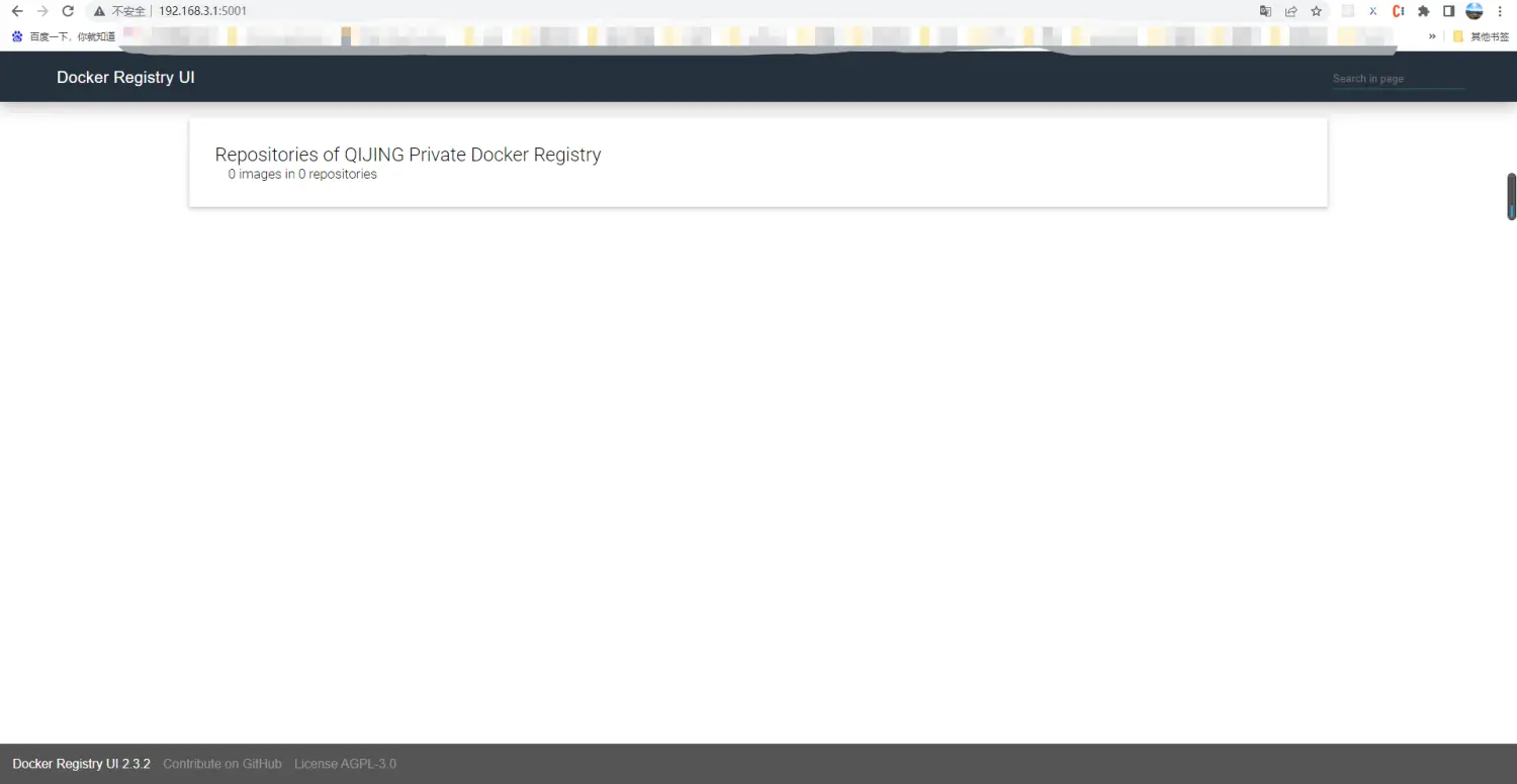 [root@qijing0 ~]# docker run -d -p 5001:80 --env REGISTRY_TITLE='QIJING Private Docker Registry' --env REGISTRY_URL=http://192.168.3.1:5000 --env SINGLE_REGISTRY=true --name docker-registry-ui joxit/docker-registry-ui:latest