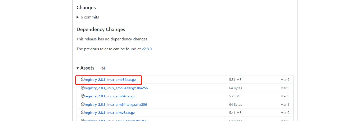 wget https://github.com/distribution/distribution/releases/download/v2.8.1/registry_2.8.1_linux_amd64.tar.gz