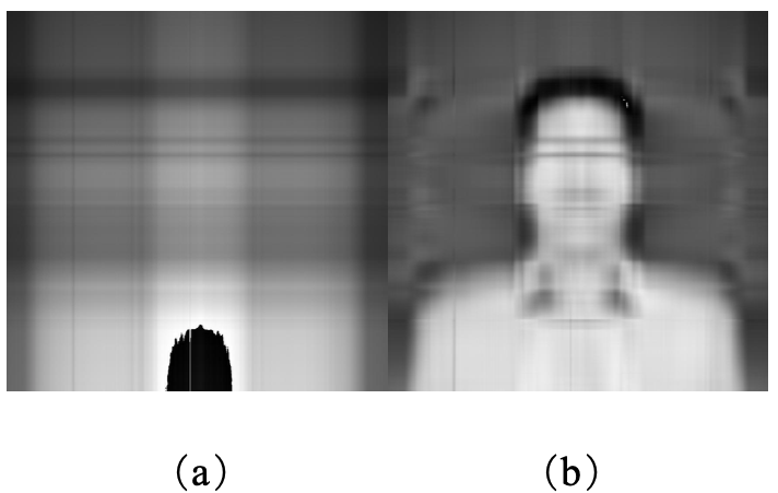 首先,若我们只保留最大的奇异值 λ1,舍去其它奇异值,作图 8(a)。接着取前五大奇异值,如图 8(b)。