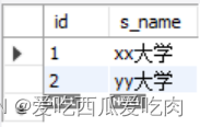 要注意的是两表的主键都为id,where后面的id写明具体表的id,否则报错,得到的字段取别名以便分辨(学校id为s_id)