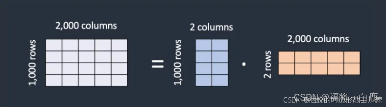 在这个示例中,矩阵的秩是 2。它远远低于原始维度,因此被称为低秩矩阵。秩可以低至 1。