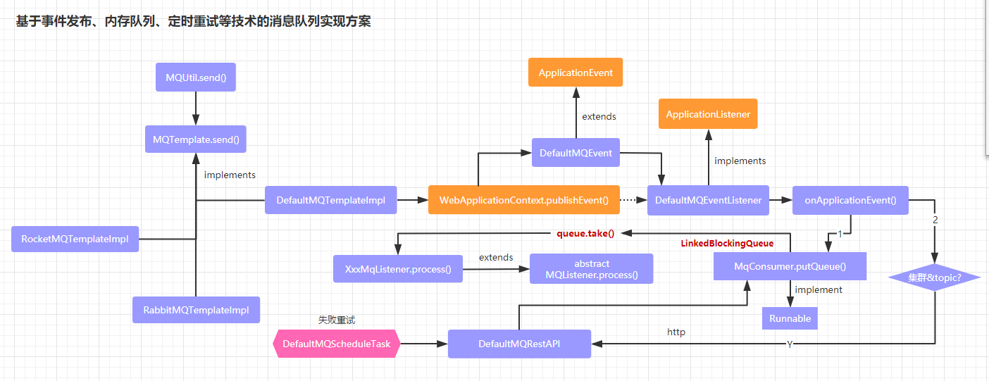 - 取到元素后,通过消息对象的属性,反射调用到消息监听者的process()方法即可