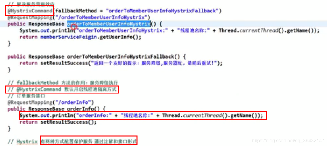 4.注解方式:@HystrixCommand(默认阈值是10,需要配)